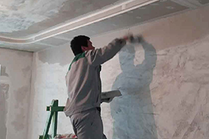 專用環(huán)保改性膩?zhàn)舆M(jìn)行披刮,調(diào)整墻體的平整度、清潔度和濕潤(rùn)度,通過(guò)厚度和平整度的檢驗(yàn)控制,確保墻面品質(zhì)。